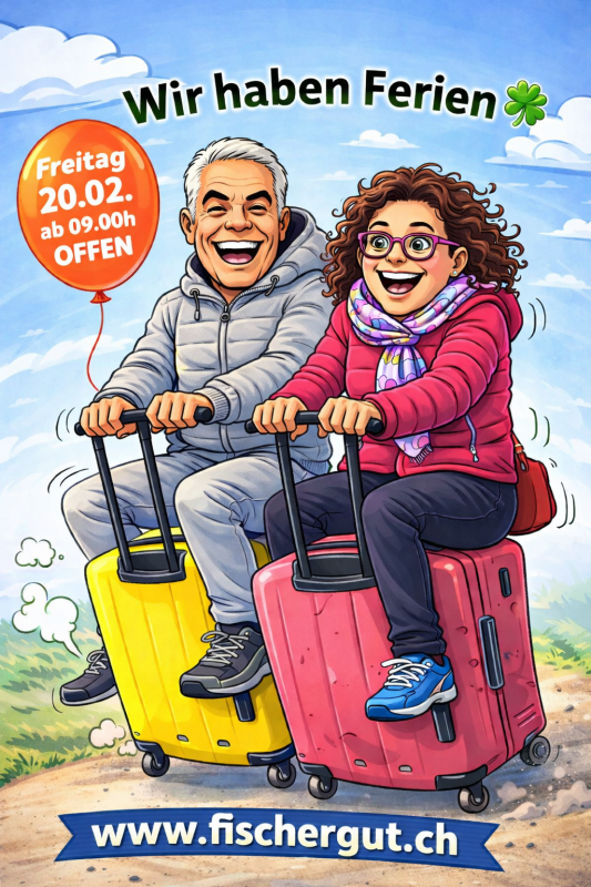 Wir haben Ferien. Das Beizli ist geschlossen. Ab Freitag, 20.02, ab 09.00h ist wieder geöffnet. Gueti Ziit und bis bald :-)