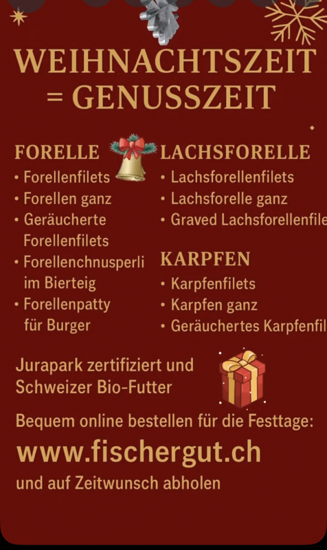 Fischverkauf: Um Wartezeiten zu vermeiden, bestellen Sie bitte vorab Ihre Fische per Onlineformular. Sie können Ihre Bestellung auf Zeitwunsch (gemäss Öffnungszeiten) abholen. Bar- oder Kartenzahlung möglich.